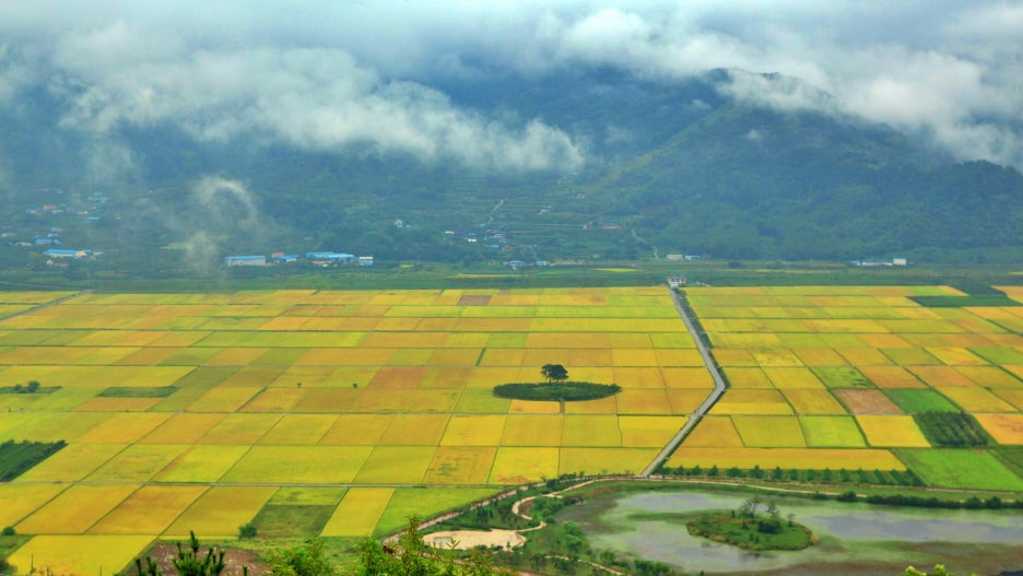 9월이면 황금빛 벼가 물결쳐서 전형적인 한국 가을 농촌 풍경을 사진에 담을 수 있습니다.