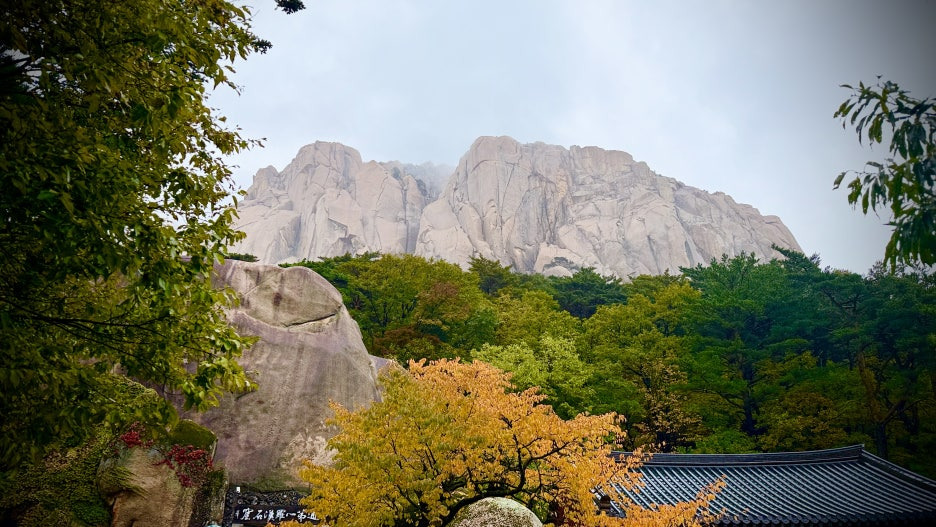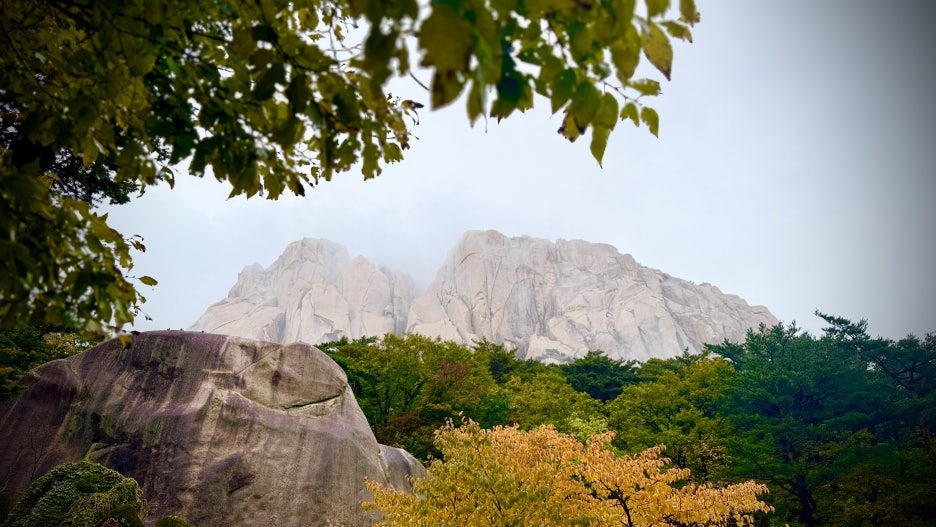 가을, 설악산 흔들바위와 울산바위로 향하는 길은 단풍빛 물결로 물든 계절의 절정을 걷는 듯하다.