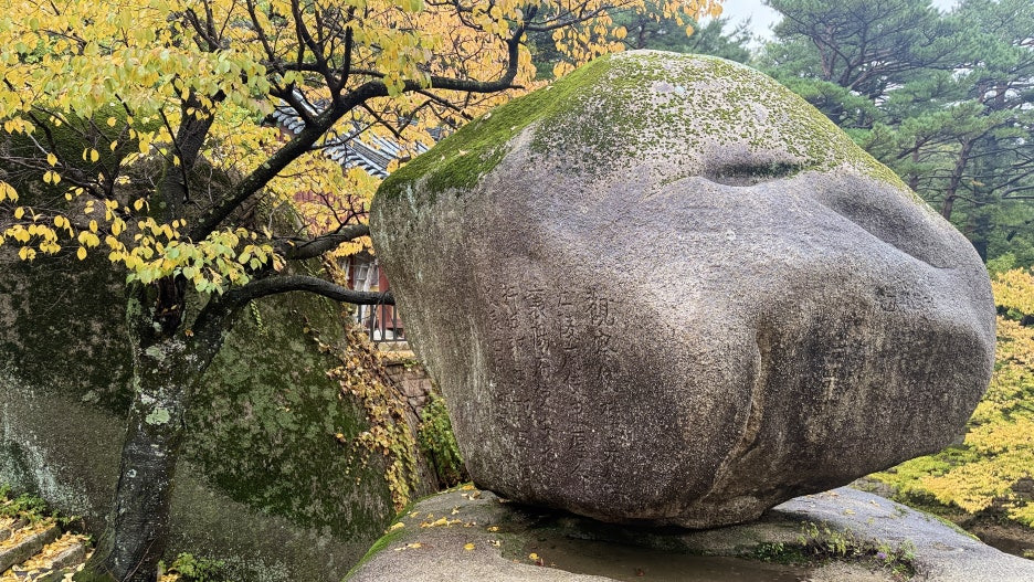 3. 흔들바위와 단풍의 대비 강조 : 흔들바위를 찍을 때는 단풍을 전경(앞쪽)에 두고 바위를 배경으로 넣으면 좋습니다.