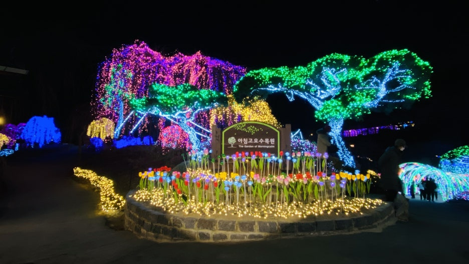 아침고요수목원은 겨울밤을 가장 아름답게 수놓는 빛의 정원, 해가 지고 어둠이 내려앉는 순간, 정원 곳곳에 켜지는 조명은 차분한 자연 풍경과 어우러져 마치 동화 속 한 장면처럼 펼쳐집니다. 낮에는 고요한 겨울 수목원의 정취가, 밤에는 크리스마스 시즌만의 화려하면서도 따뜻한 분위기가 더해져 전혀 다른 매력을 느끼실 수 있습니다. 수목원 산책로를 따라 천천히 걸으시다 보면 나무와 화단, 언덕과 연못 주변까지 섬세하게 연출된 조명이 시선을 사로잡습니다. 강렬하기보다는 은은하고 부드러운 빛이 중심이 되어, 걷는 내내 마음이 차분해지실 것입니다. 크리스마스 시즌을 상징하는 트리와 조형물들은 사진으로 남기기에도 좋아, 가족이나 연인과 함께라면 자연스럽게 추억을 쌓으시기에 좋습니다. 추운 날씨를 대비해 따뜻한 옷차림으로 방문하신다면, 겨울 밤공기 속에서 더욱 또렷하게 빛나는 풍경을 온전히 즐기실 수 있습니다. 걷는 동안 들려오는 발자국 소리와 잔잔한 음악, 그리고 부드러운 불빛은 한 해를 차분히 돌아보게 만들어 줍니다.