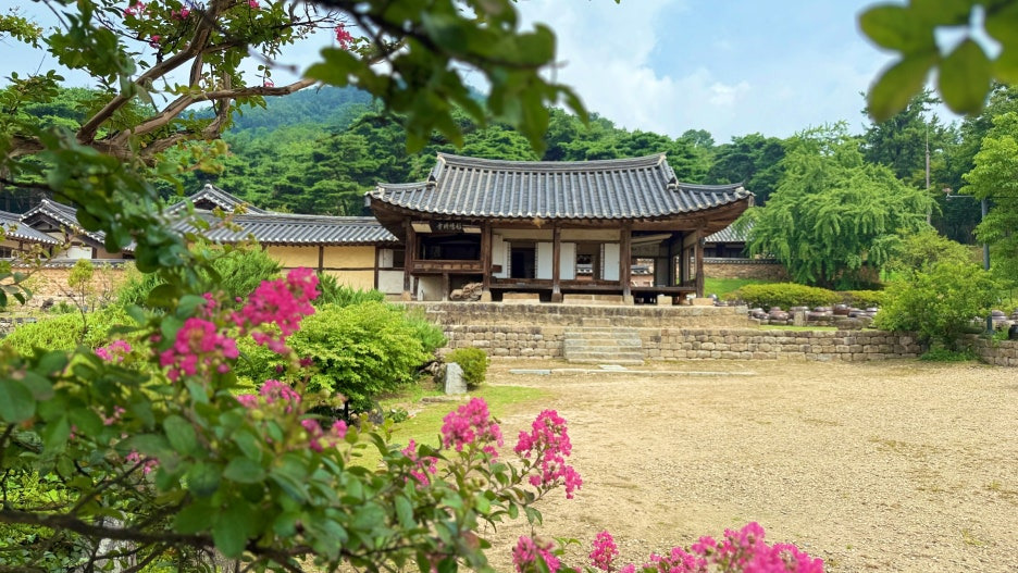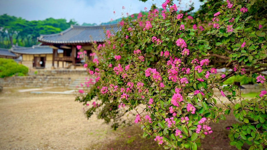 #종학당 : 담장과 고택이 어우러진 풍경 속에서 배롱나무꽃이 만개하며 고전미를 자아내는 장소로 사진 명소로도 유명