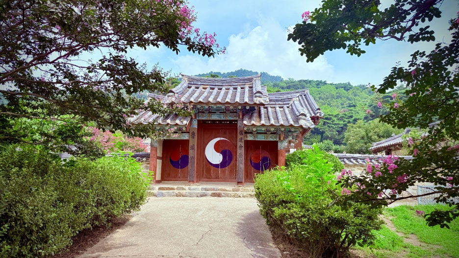 8월, 충남 논산의 종학당(宗學堂)은 붉게 피어난 배롱나무 꽃으로 사진가들의 비밀 정원이 됩니다.